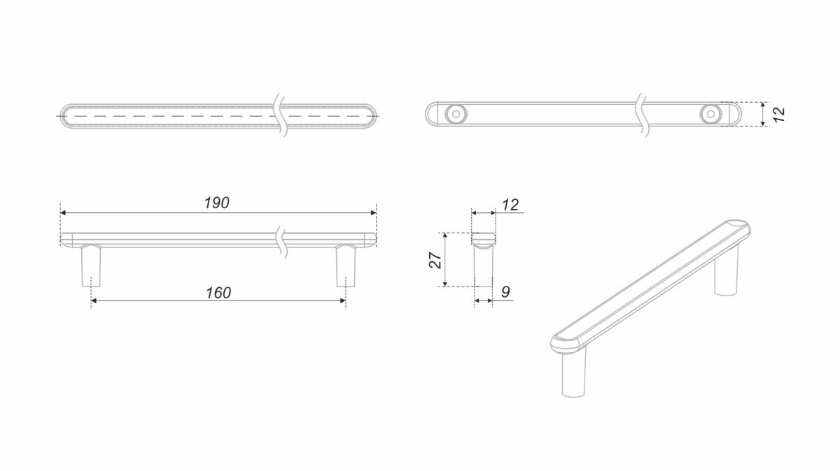 VIA RS330 — мебельная ручка-скоба из цинк-алюминия минималистичного стиля с эргономичным углублением по центральной линии. Название ручки переводится с латинского как «дорога».