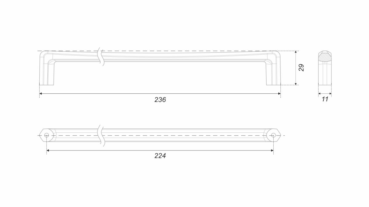 ORION RS332 — мебельная ручка-скоба из цинк-алюминия имеет гладкие и чёткие линии по всему периметру.