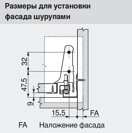 TANDEMBOX Крепление фасада переднее на саморезы BLUM