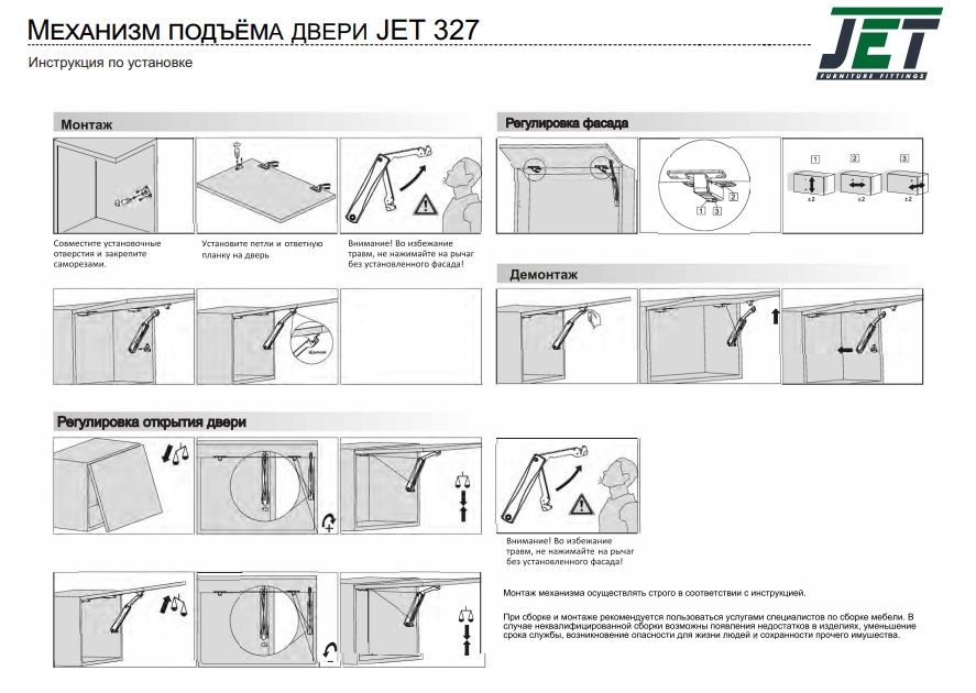Доступные регулировки: регулировка положения фасада 30 {с помощью петель), регулировка усилия открытия/закрытия механизма.