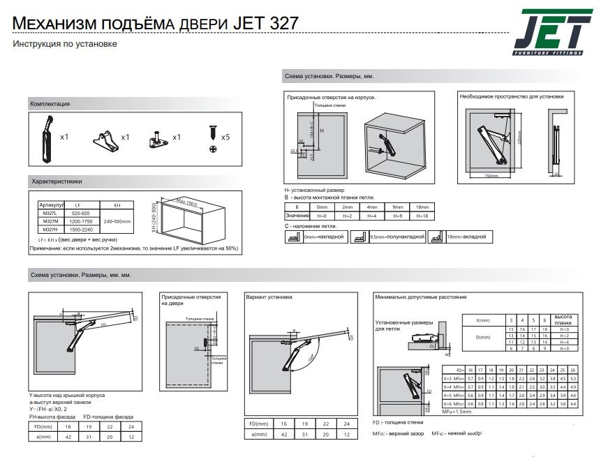 Универсальный механизм — правый/левый (в зависимости от веса фасада возможна установка двух механизмов в один корпус}.