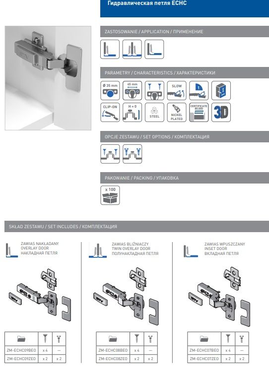 Петля вклад с доводчиком с ответ планкой GTV ZM-ECHC07BEO