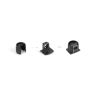 Рёбра по окружности пластикового корпуса служат для плотной фиксации держателя в полке, особая конструкция полкодержателя прочно закрепляет полку на фланце, а разборное соединение удобно для пробной сборки, хранения и перевозки мебели.