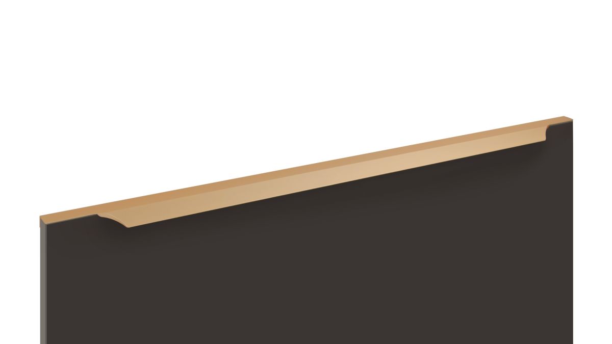 WING RT114 допускает размещение двумя способами — «в размер» фасада (актуально для размеров 500-900 мм) и по центру широких фасадов, как большой «язычок» (для размеров 150 мм, 200-400 мм, 450 мм).