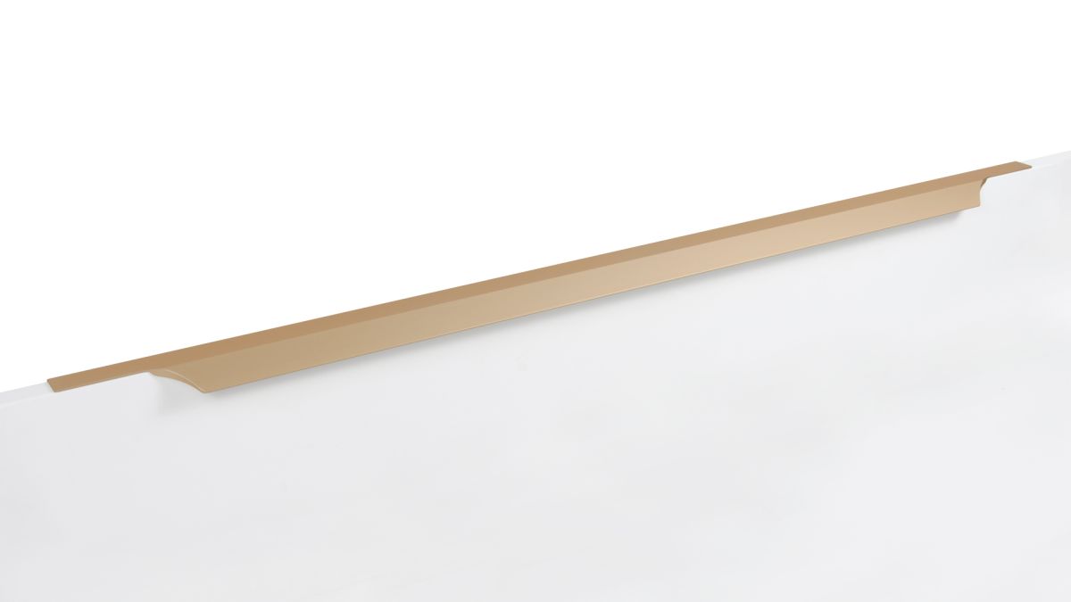 WING RT114 — торцевая ручка с изгибом из алюминия, устанавливается наложением на фасады толщиной 18,8 мм (в цветах BL,GR,SC,SG) и 18,5 мм (в цвете W).