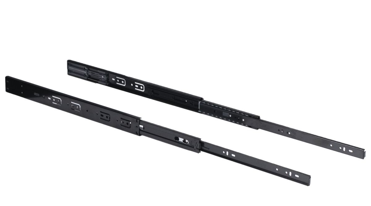 Направляющие полного выдвижения, современный надежный механизм доводчика. Технические данные: толщины 1.2*1.2*1.4, Длина: 450 мм, Высота: 45 мм. Грузоподъемность: 35 кг. Материал: сталь. Проверено нагрузкой 35 кг – 80 000 циклов. Цвет - чёрный