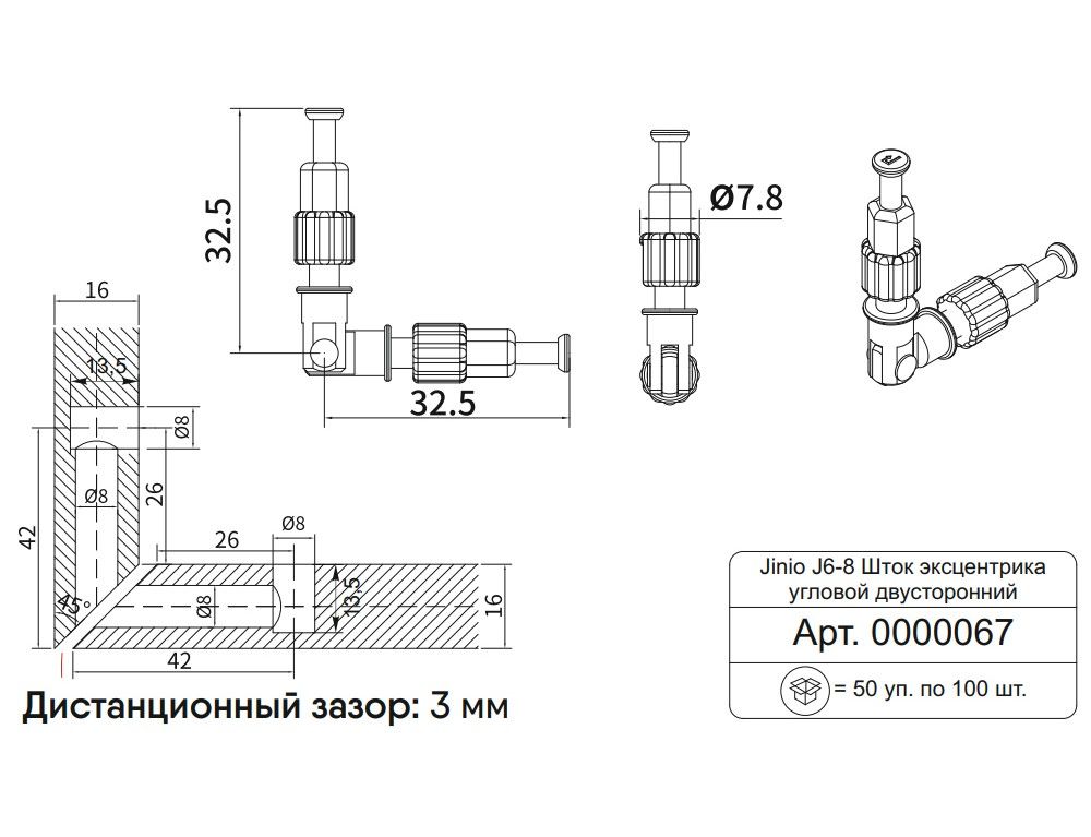 Шток эксцентрика угловой двусторонний Jinio J6-8