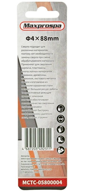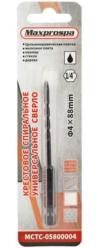 Сверло универсальное 4*88мм 1/4" (4 резца) Maxprospa
