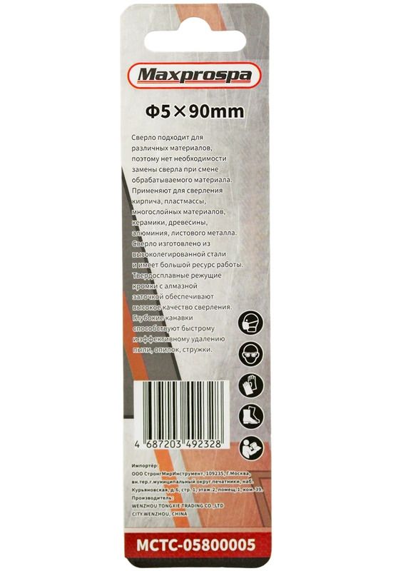 Сверло универсальное 5*90мм 1/4" (4 резца) Maxprospa