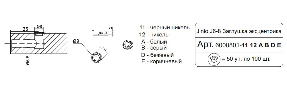Заглушка эксцентрика белый D=9мм Jinio J6-8